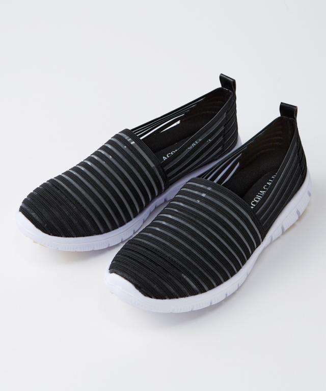 【ゆったり幅広】超軽量メッシュボーダーゴムスリッポンスニーカー(ワイズ4E)