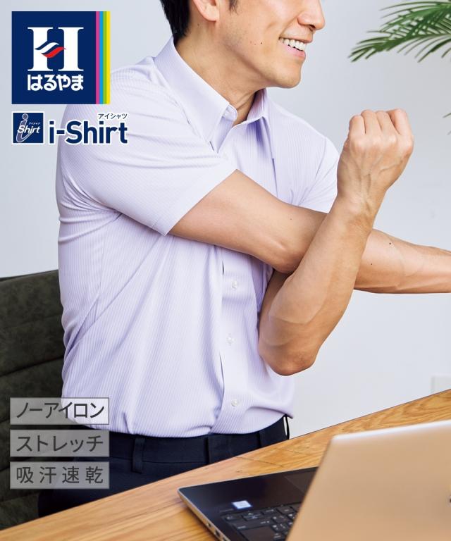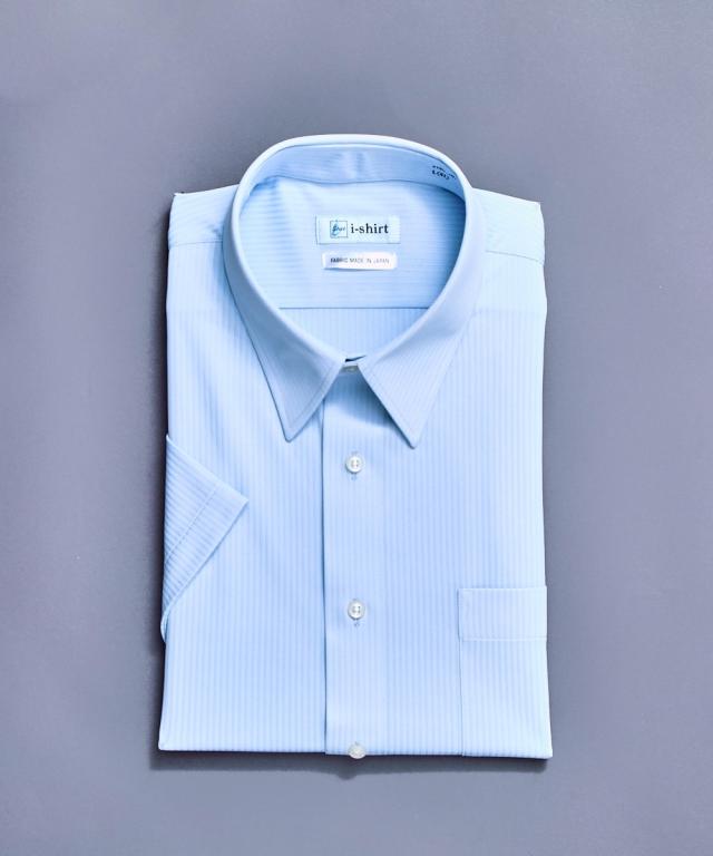 ノンアイロン半袖ストレッチiシャツ ドビーストライプアイシャツ(レギュラーカラー)