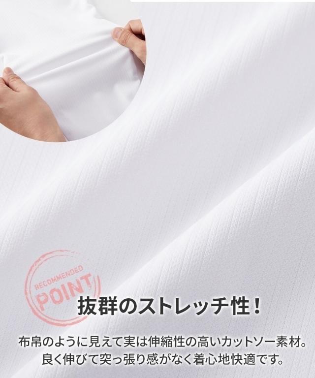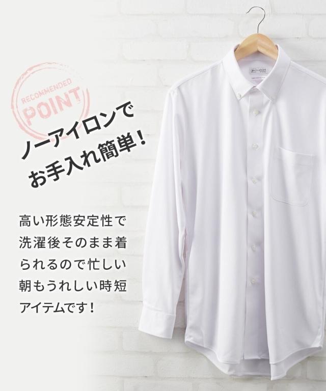 ストレッチ素材を使っているので、着心地快適。また、圧倒的な形態安定性とノンアイロン仕様になっているの