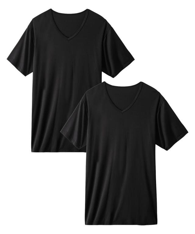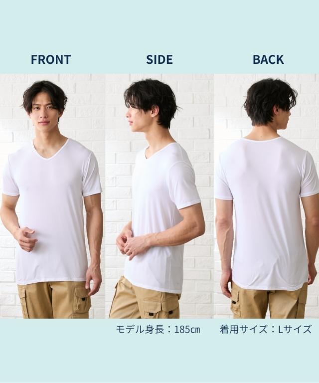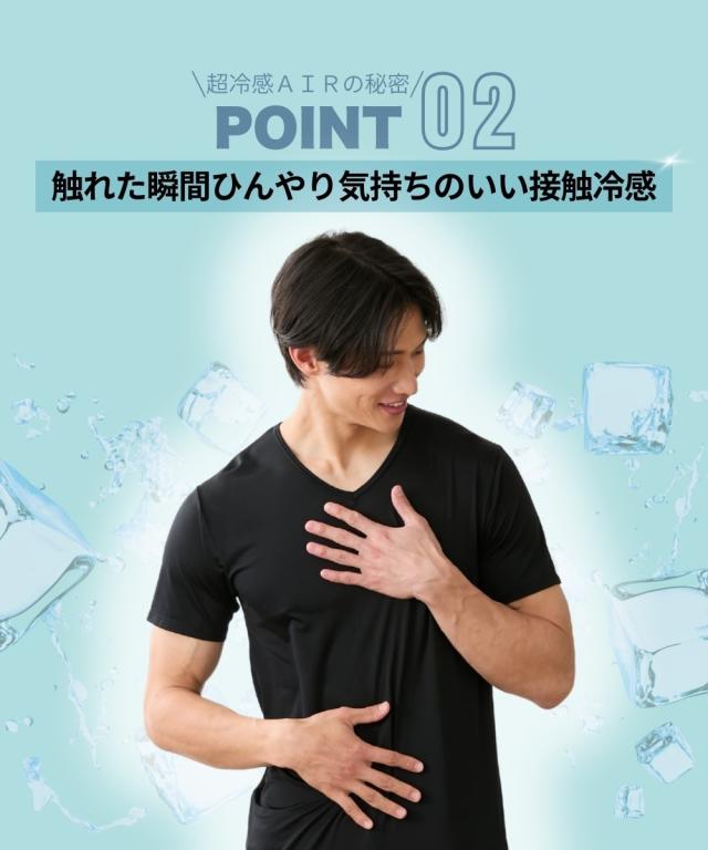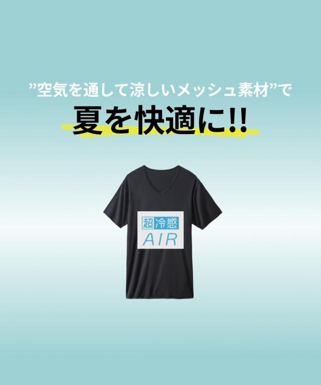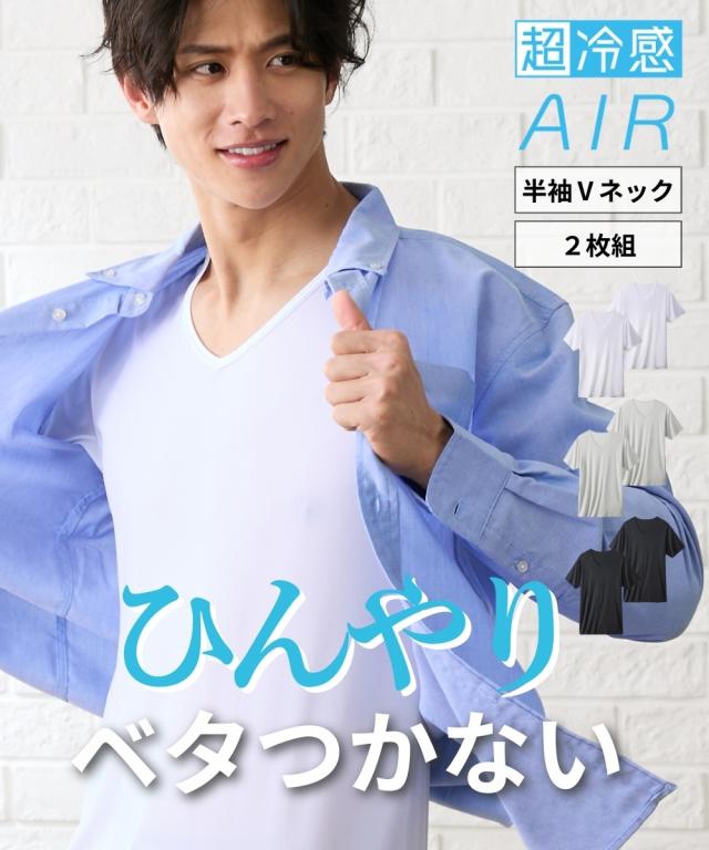 インナー メンズ 超冷感 AIR メッシュ V首 半袖 2枚組 接触冷感 吸汗速乾 UVカット 夏 M/L/LL