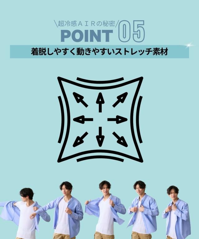 〜涼しく進化した超冷感AIR〜 『ひんやり冷感』を追及すると通気性が悪くなりがちな夏インナー。 ひやっとして通気性もいい そんなダブルで嬉しい新インナーを考え、誕生したのが超冷感AIRです。 洗い替えに便利な同色2枚組でお届けします。 深めのVネックでシャツのインとしても重宝します! 〜超冷感AIRの嬉しいポイント〜 ・接触冷感 ひんやり気持ちいい素材です。 ・吸汗速乾 汗をかいても素早く吸収しサッと乾くから、ベタ付きにくく快適な着心地です。 ・メッシュ素材 肌との接地面が少ないからサラッと快適、かつ薄手で軽く涼しい素材で暑いシーズンにピッタリです。 ・紫外線遮蔽率は95%以上。肌にやさしい、着用するだけの日焼け対策になります。