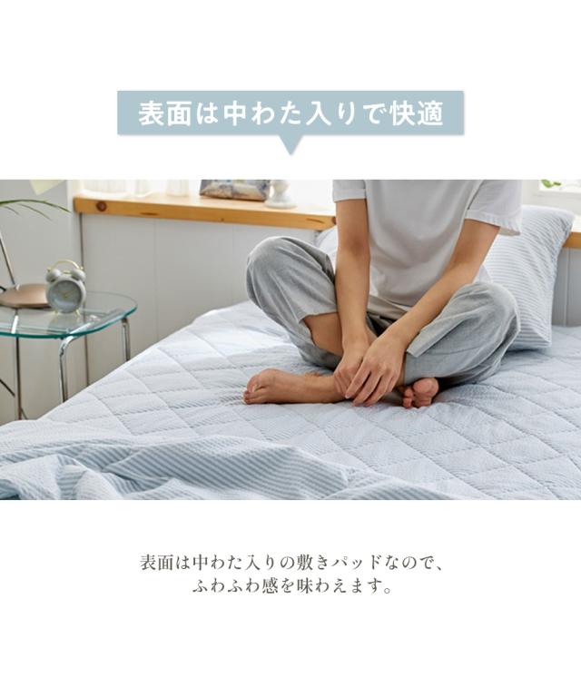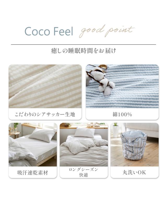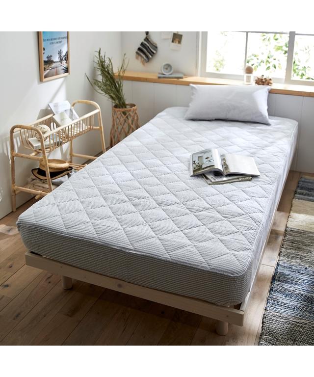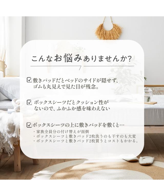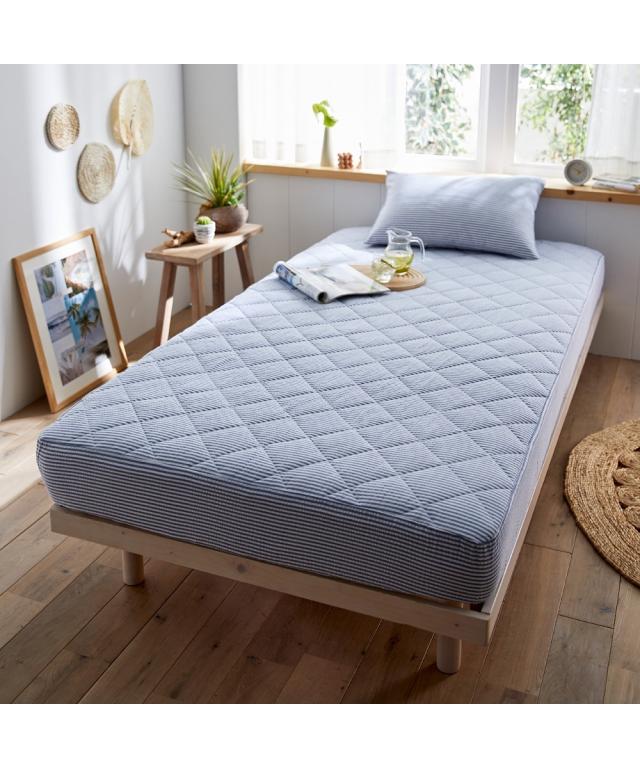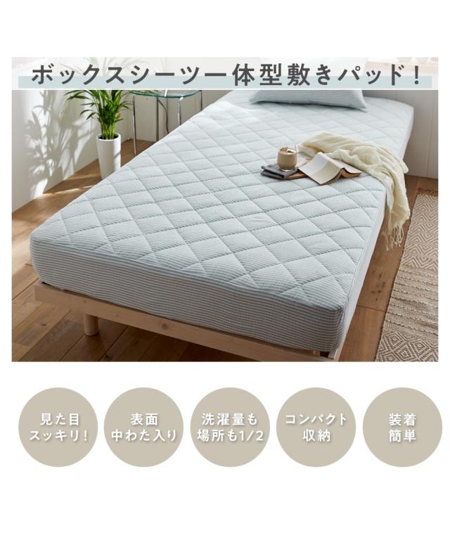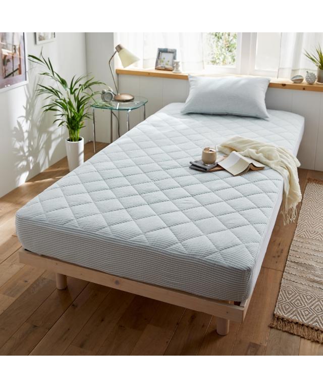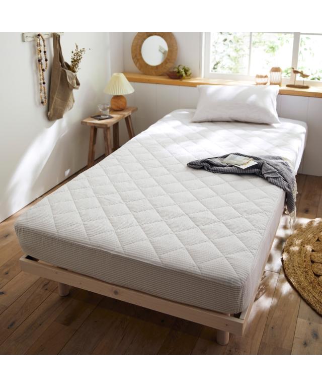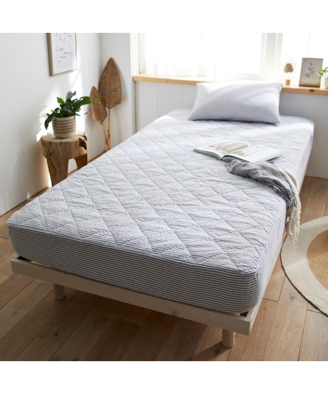 コットン100%シアサッカーボックスシーツ一体型敷きパッド(Coco Feel)
