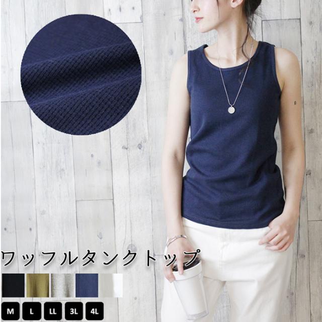 ワッフルタンクトップ コットンフライス サーマルワッフル メール便送料無料 コットン インナー レディース トップス タンクトップ ランニング 袖なし 0081