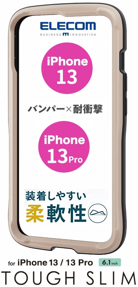 iPhone13/13 Proハイブリッドバンパーケース 耐衝撃 ワイヤレス/Magsafe充電対応 6.1インチ PM-A21BTSLBIV ストラップホール付 アイボリー