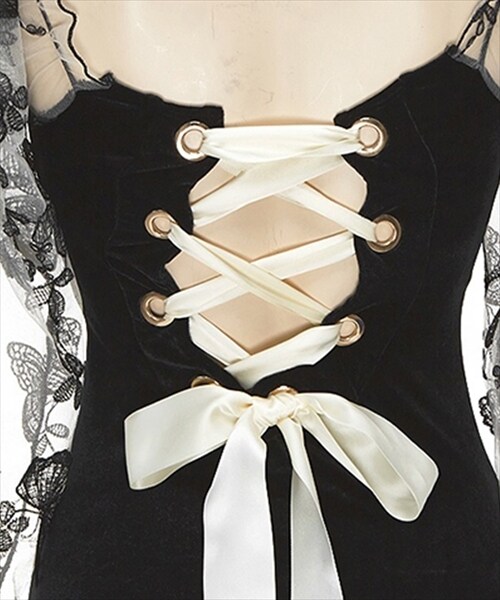 テディショップ(TeddyShop)/レディース水着 シースルーボタニカル柄バックレースアップオールインワンスイムウェア