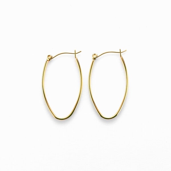 少し幅のあるデザインなので、普段のコーディネートに合わせるだけでスタイリッシュな印象に。程よいボリューム感のフープピアスは大人カジュアルにもおすすめです。