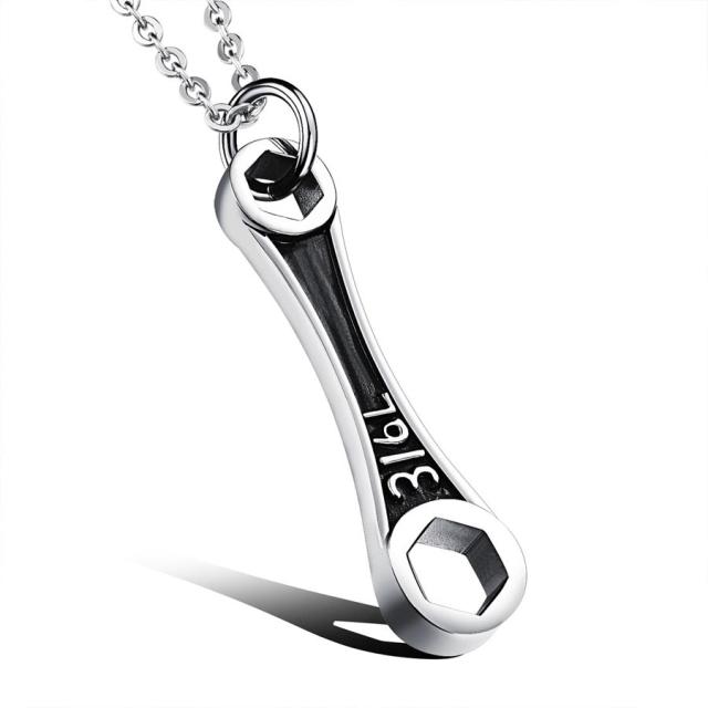 316Lとデザインしたレンチをモチーフにしたユニークで面白いステンレスペンダントを3mmのステンレスチェーンに通したネックレス。