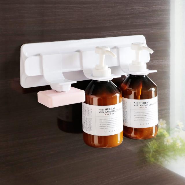 《 壁面 壁 壁面収納 ソープディッシュ 石けん皿 シャンプー コンディショナー ボディーソープ 小物収納 ホワイト 白 お風呂グッズ バスグッズ バス用品 お風呂用品 整理整頓 》