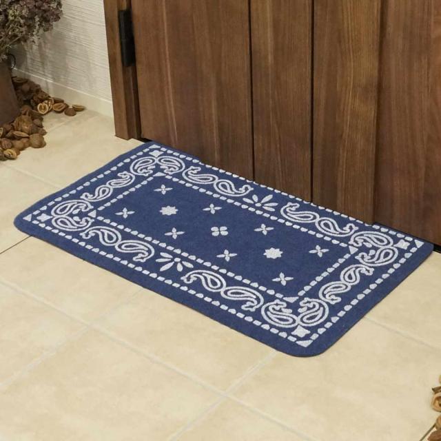 玄関マット 45×75cm ペイズリー ( 玄関 マット 屋外 洗える 泥落とし エントランスマット 薄型 おしゃれ 玄関用品 45cm 75cm 滑り止め 加工 ブルー )