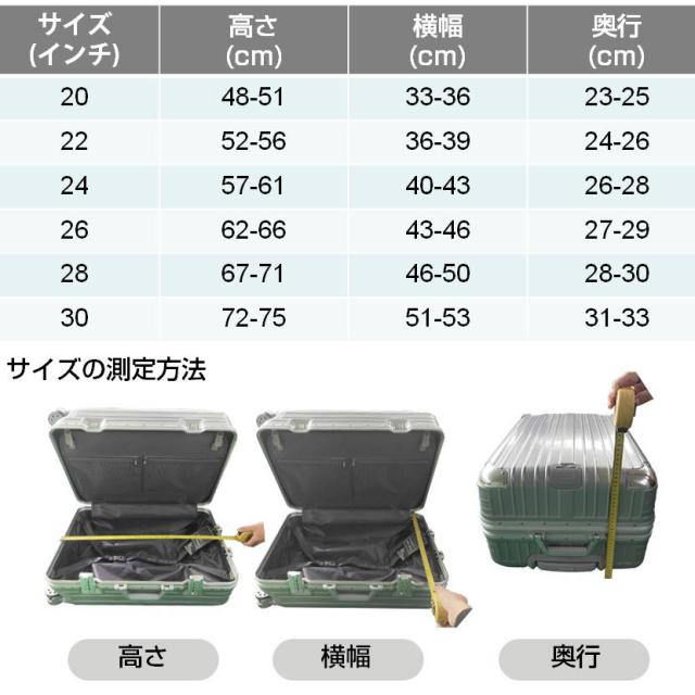 ※購入時は、お手元のスーツケースのキャスターを除いた部分の寸法に基づいてサイズをお選びください。