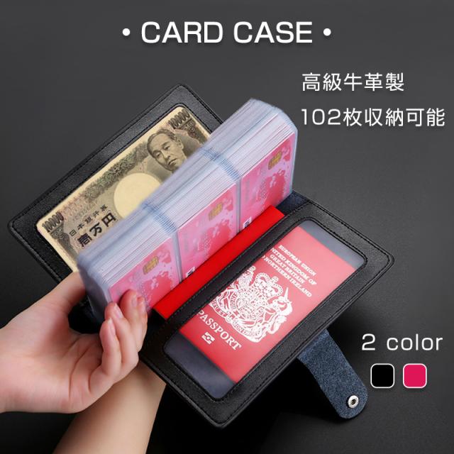 カードケース メンズ レディース 大容量 名刺入れ クレカ 102枚収納 本革 牛革 高級 カードホルダー カード収納 カードバッグ 手帳型 じゃばら 黒 ピンク
