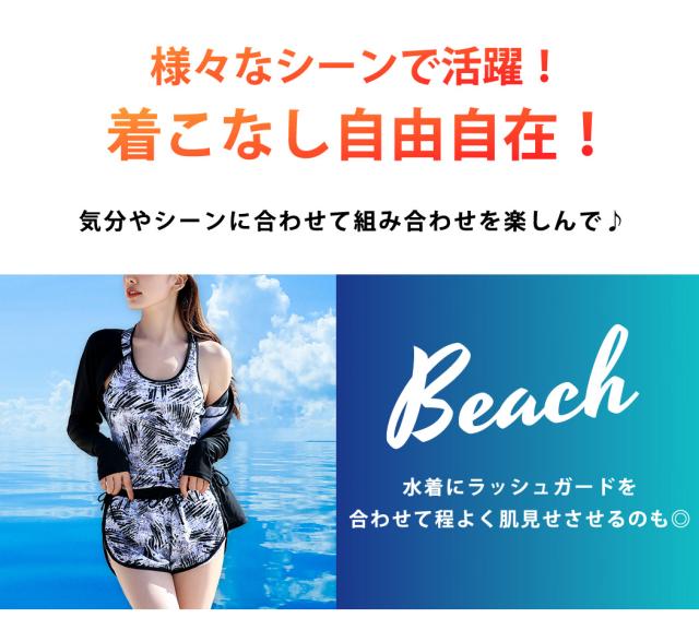 - 胸元が少し緩いのとショートパンツのサイドが切れている事が残念で星四つにしました。 ラッシュガードとレギンスでカバーできるので良かったです
