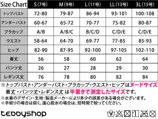 着丈・パンツ丈・レギンス丈は平置きで測定したサイズです。