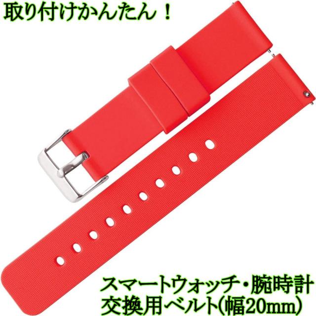 スマートウォッチ ベルト バンド シリコン 18mm 20mm 22mm イージークリック 腕時計 交換ベルト おすすめ (レッド 20mm)