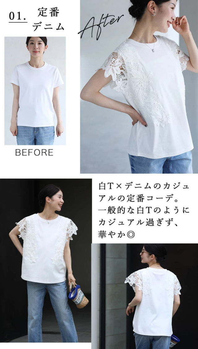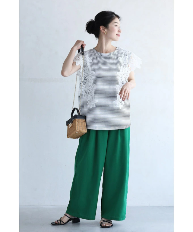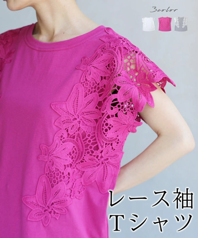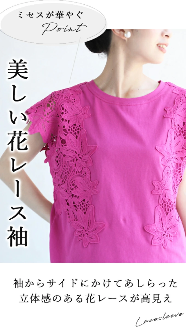 w54425ss 新作 新着 再入荷 CAWAII FRENCHPAVE フレンチパヴェ エレガント ベーシック カジュアル 可愛い かわいい カワイイ おしゃれ オシャレ お洒落 個性 個性的 定番 ベーシック 大人かわいい 大人可愛い 上品 女性らしい デザイン スタンダード ナチュラル きれいめ キレイめ シンプル フェミニン レディース レディースファッション 大人 ママ ミセス 30代 40代 50代 60代 着ればエレガント増し 花 レース袖 Tシャツ トップス カットソー プルオーバー 半袖 半そで クルーネック 丸首 S M 小さめ 小さめサイズ小さい 小さいサイズ 低身長 痩せ ほっそり 小柄 細身 L 2L LL XL 大きめサイズ 大きめ 大きい 大柄 高身長 ビッグシルエット オーバーサイズ ゆったり F フリーサイズ ゆったりサイズ 薄手 涼しい ずずしい 春 夏 秋 春服 春物 夏 夏服 夏物 ブラック 黒色 ホワイト 白色 グリーン 緑色 天然素材 綿100% コットン100% ワンカラー ワントーン 花柄 花模様 フラワー柄 日常着 普段着 日常使い ヘビロテ 毎日着れる