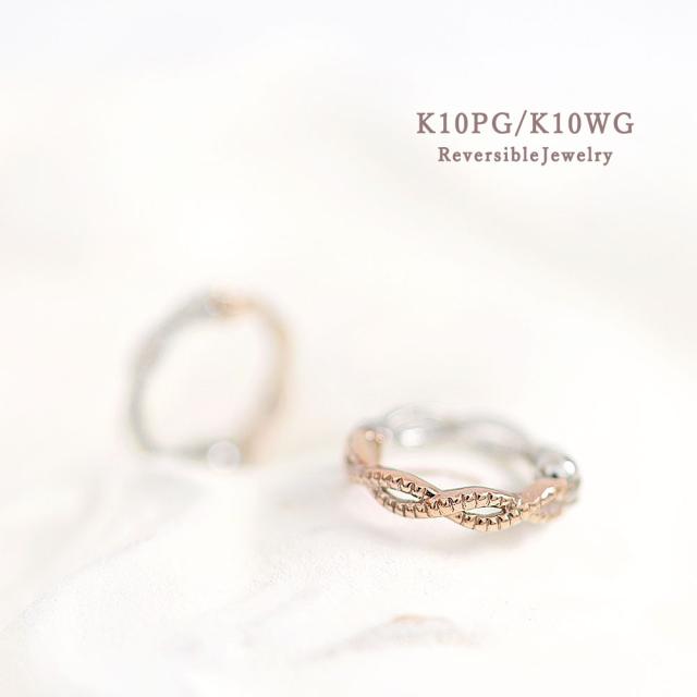 ピアリング 正規品 イヤリング レディース ピンクゴールド 10金 ホワイトゴールド K10 10K ジュエリー リバーシブル おしゃれ プレゼント 記念日 贈り物 お祝い ギフト 誕生日 コンビジュエリー ツートンカラー 本物 クリップ 地金 透かし 小ぶり 母の日 ギフト 2026