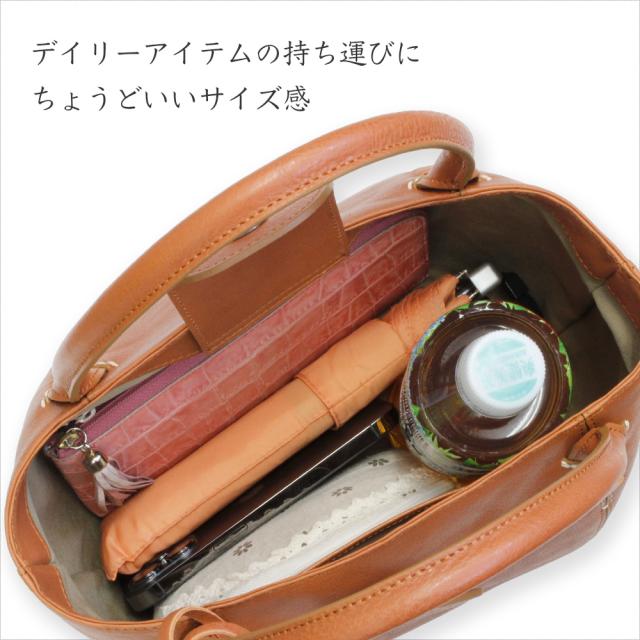 日常に必要アイテムがちょうど入る大きさ、本革ならではの高級感で、通勤やショッピング、ランチ〜散策、ちょっとそこまで等デイリーに使いやすいサイズ感も魅力です。