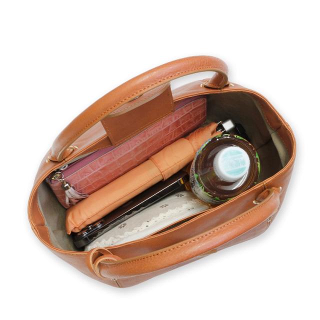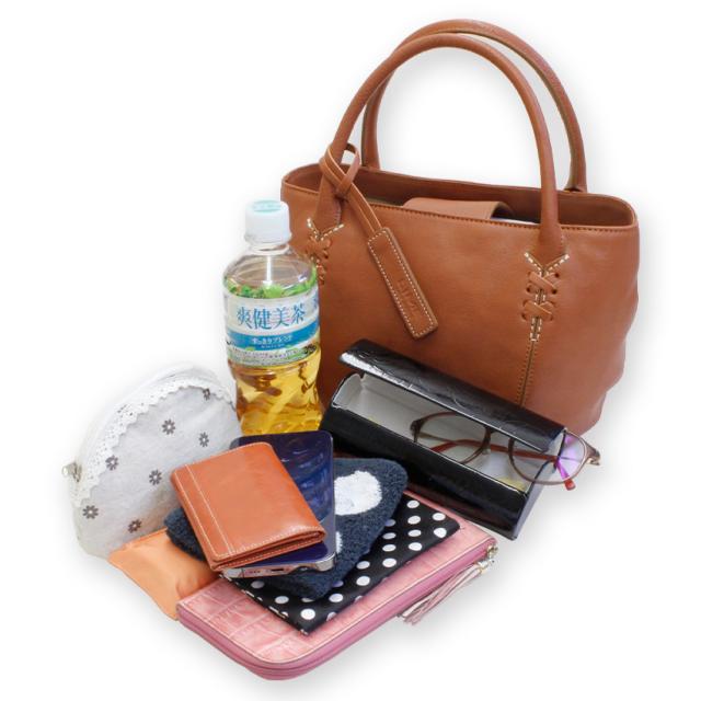 小さめのハンドサイズながら、マチがあるので日常必要なアイテムの持ち歩きにちょうどよい収納力。