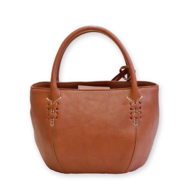 素朴な風合いのナチュラルレザーが魅力のハンドサイズトートバッグ。