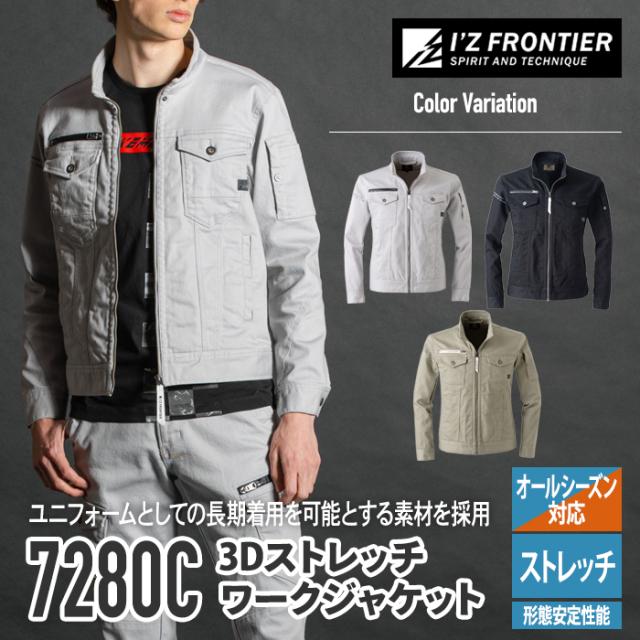 アイズフロンティア 作業服 7280C ストレッチ3Dツイルワークジャケット S-6L 春夏秋冬