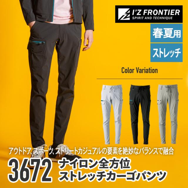アイズフロンティア 作業服 作業ズボン 3672 サマーナイロンADストレッチカーゴパンツ SS-5L 春夏 作業着 おしゃれ 3670対応