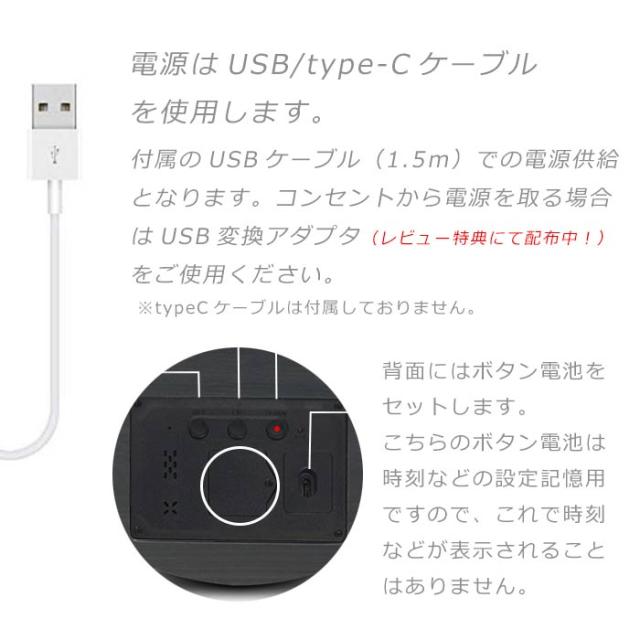 USB式の電源の為、電池の心配も無用です。USBの他にtypeCでの電源にも対応しています。