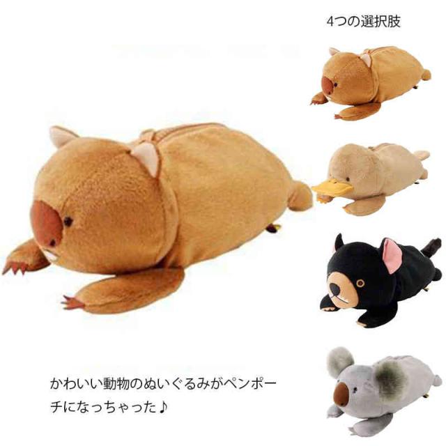 ぬいぐるみ ペンケース 動物 アニマル プレゼント ギフト コアラ カモノハシ 犬 ポーチ コスメポーチ 大容量 筆箱 ジッパータイプ ふでばこ かわいい ふで箱 入学祝い 新学期 文房具