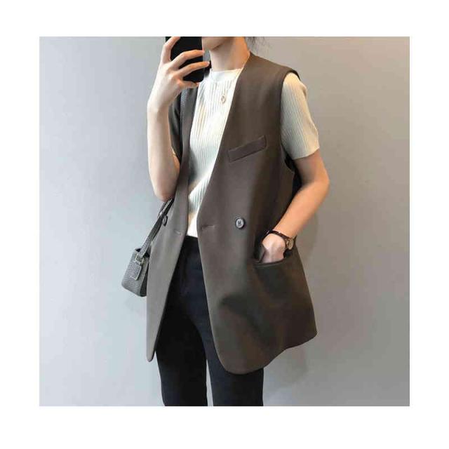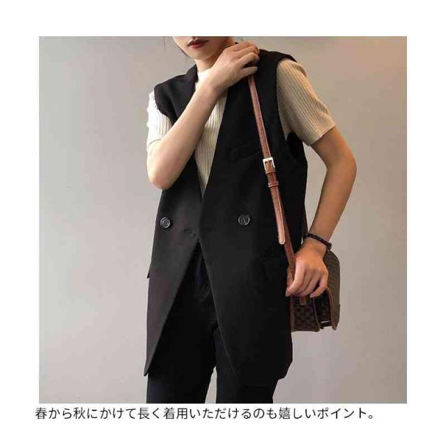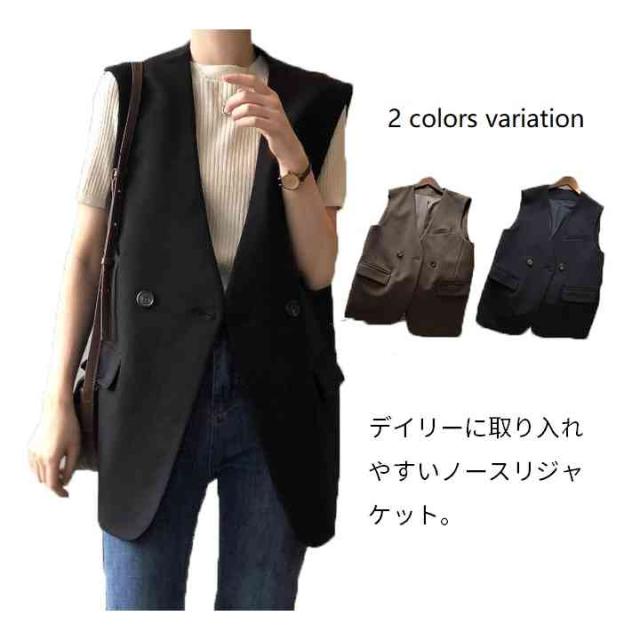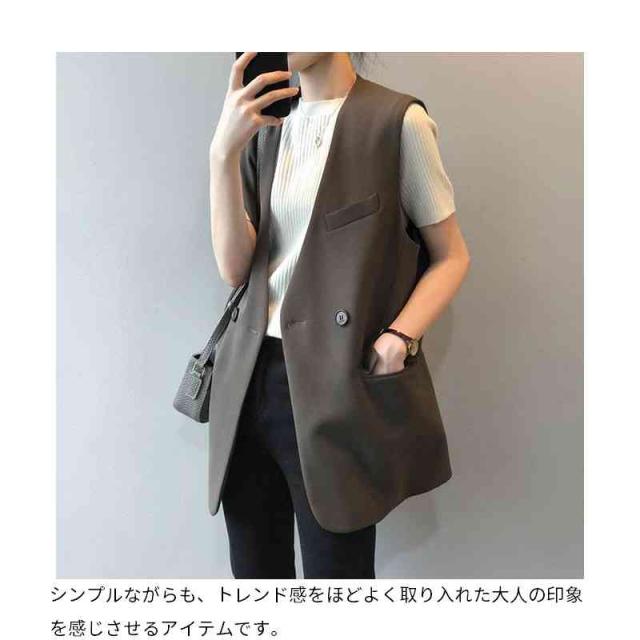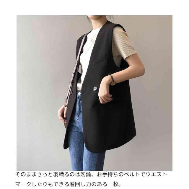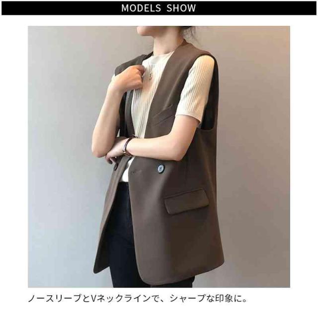 ジレ ベスト レディース ノースリーブ ジャケット チュニック丈 ノーカラージャケット スリム 無地 アウター 春 夏