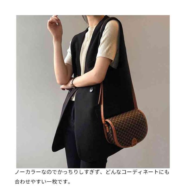 | デイリーに取り入れやすいノースリジャケット。 ノースリーブとVネックラインで、シャープな印象に。 ノーカラーなのでかっちりしすぎず、どんなコーディネートにも合わせやすい一枚です。 シンプルながらも、トレンド感をほどよく取り入れた大人の印象を感じさせるアイテムです。 春から秋にかけて長く着用いただけるのも嬉しいポイント。 そのままさっと羽織るのは勿論、お手持ちのベルトでウエストマークしたりもできる着回し力のある一枚。 | |