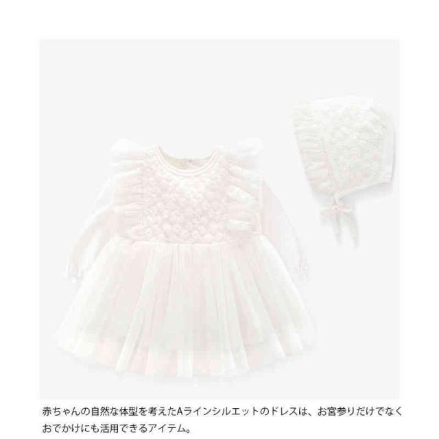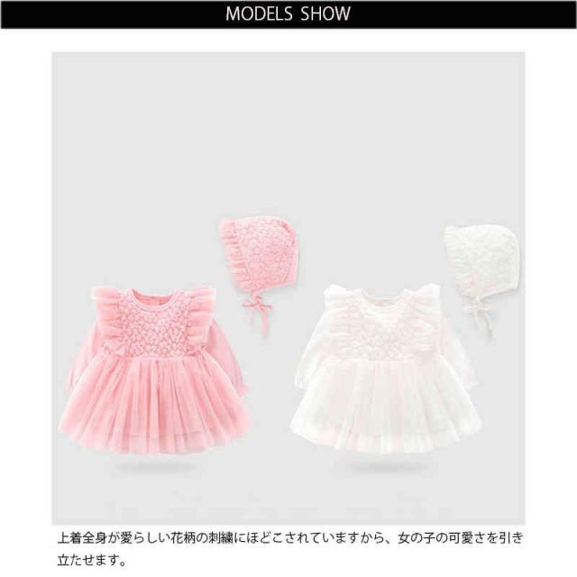 | キュートなベビードレス+帽子2点セットが新登場! 上着全身が愛らしい花柄の刺繍にほどこされていますから、女の子の可愛さを引き立たせます。 下にチュールたっぷりで、メリハリのあるイメージを演出します。 優しい肌当たり、お子様には快適に着ていただけます。 後ろボタンあきなのでお着換えもらくらく。 裏地の部分は綿の材質で、着心地がいいです。 赤ちゃんの自然な体型を考えたAラインシルエットのドレスは、お宮参りだけでなくおでかけにも活用できるアイテム。 退院時や、お宮参り、お食い初めなど特別な日、大切な日に愛らしいドレスで包んであげてください。 誕生日パーティーの主人公として、周りのお客様やお友達同士に可愛いと誉めてもらえたり、みんなの目線を独り占めましょう♪ | |