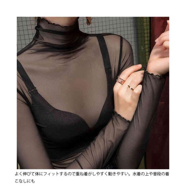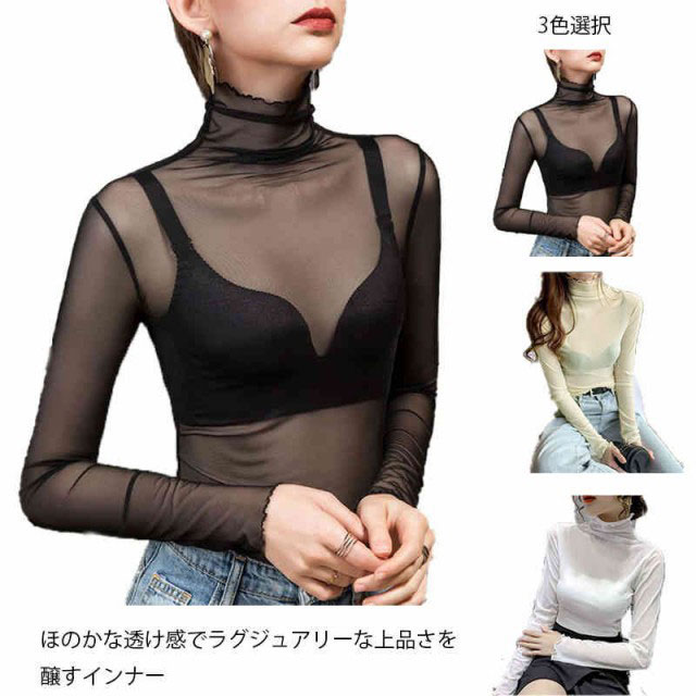 送料無料 インナー 長袖 秋 夏 春 レディース Tシャツ カットソー シースルー トップス チュール ハイネック ダンス ヒップホップ 衣装 網 メッシュ レイヤード タンクトップ 透け感 細身 下着 重ね着 パーティー 結婚式 カジュアル オフィス 韓国 派手 個性