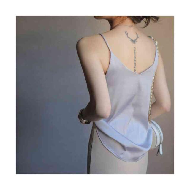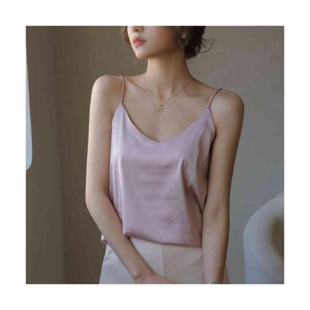 キャミソール 光沢感 Vネック サテン シンプル レディース 春 夏 秋 オールシーズン 薄め 部屋着 ツルツル セクシー インナー シンプル 無地