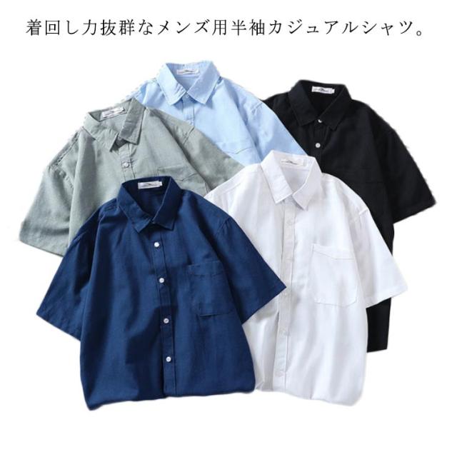 半袖 シャツ メンズ カジュアルシャツ トップス 薄手 ゆったり 無地 綿シャツ トップス 白シャツ 黒シャツ ゆるシャツ レイヤード カジュアル 夏 送料無料