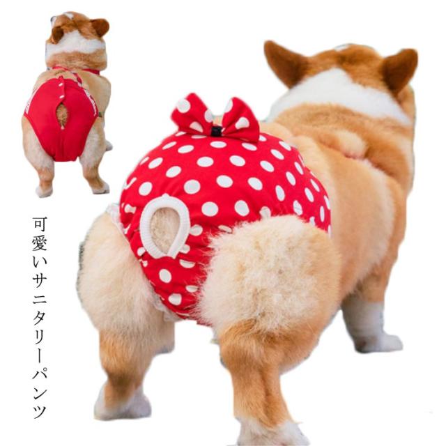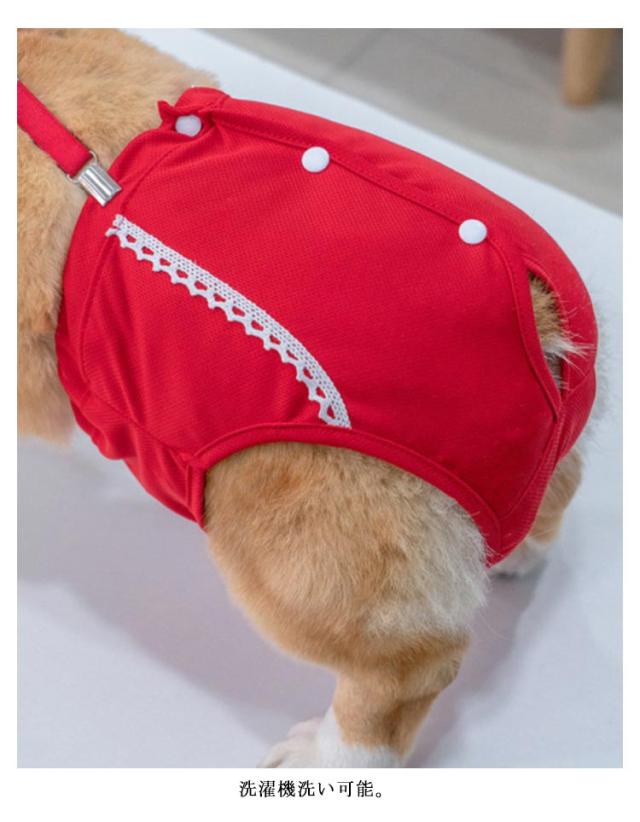 犬服 ドッグウェア サニタリーパンツ 生理パンツ マナーパンツ ドット リボン サスペンダー 女の子用 生理用 尿もれ オシッコ対策 ずれない マナー ズレ防止 ドッグカフェ 室内 おでかけ ドライブ 送料無料