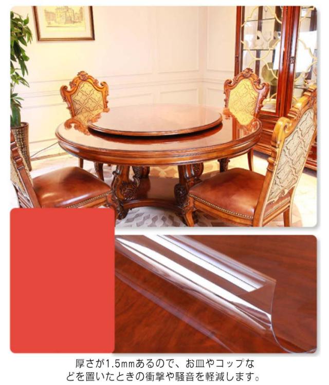 テーブルマット 円形 透明 テーブルクロス ビニール PVC 食卓 デスクマット ダイニングテーブルマット 厚1.5mm 汚れ防止 傷防止 キズ防止 ビニールクロス 撥水 防水 撥油 耐熱 テーブルクロス 透明 クリア ビニールマット 勉強机 学習机 オフィスデスク 家庭用 オフィス用