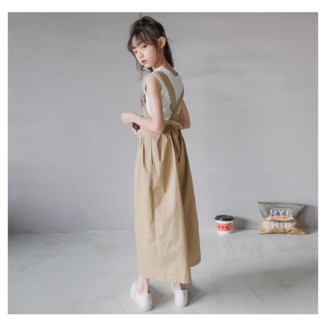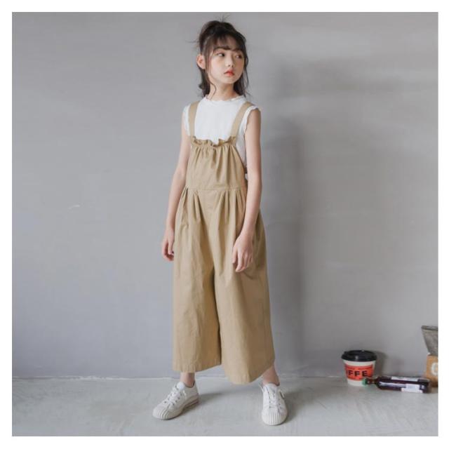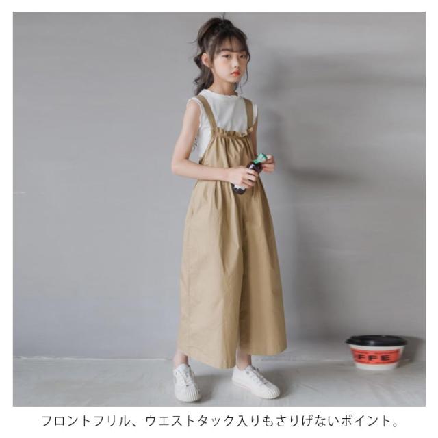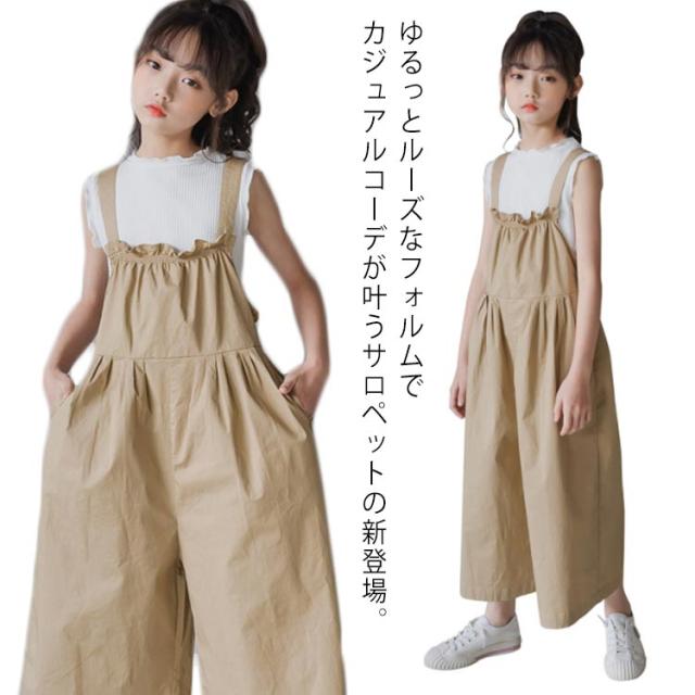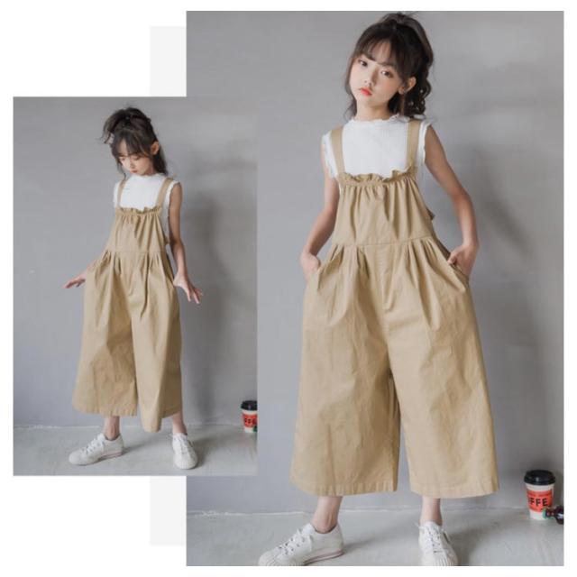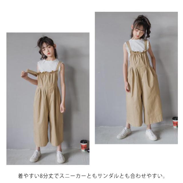 子供服 サロペット パンツ 女の子 大きいサイズ オールインワン ワイドパンツ ゆったり オーバーオール 8分丈 ゆるサロペット つなぎ 無地 春夏 秋 綿 おしゃれ ハイウエスト 可愛い 120 130 140 150 160 165