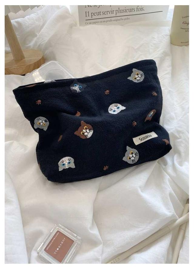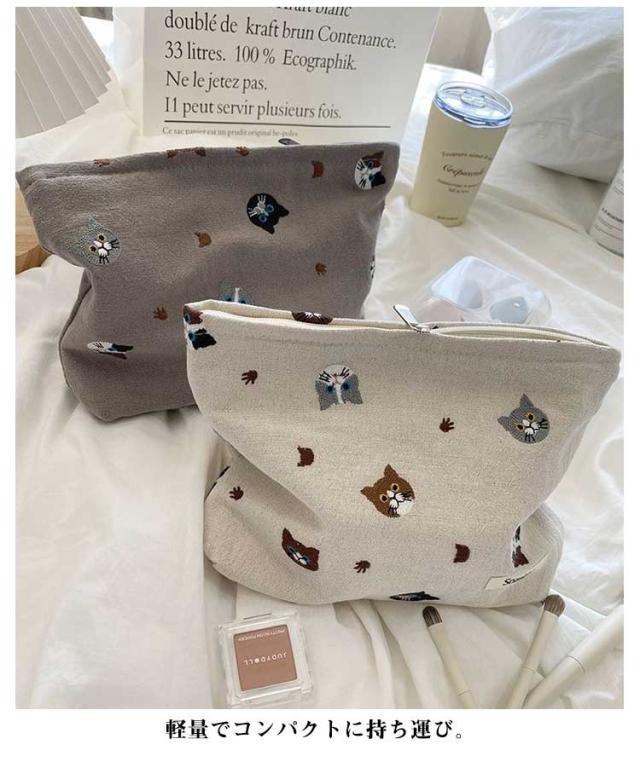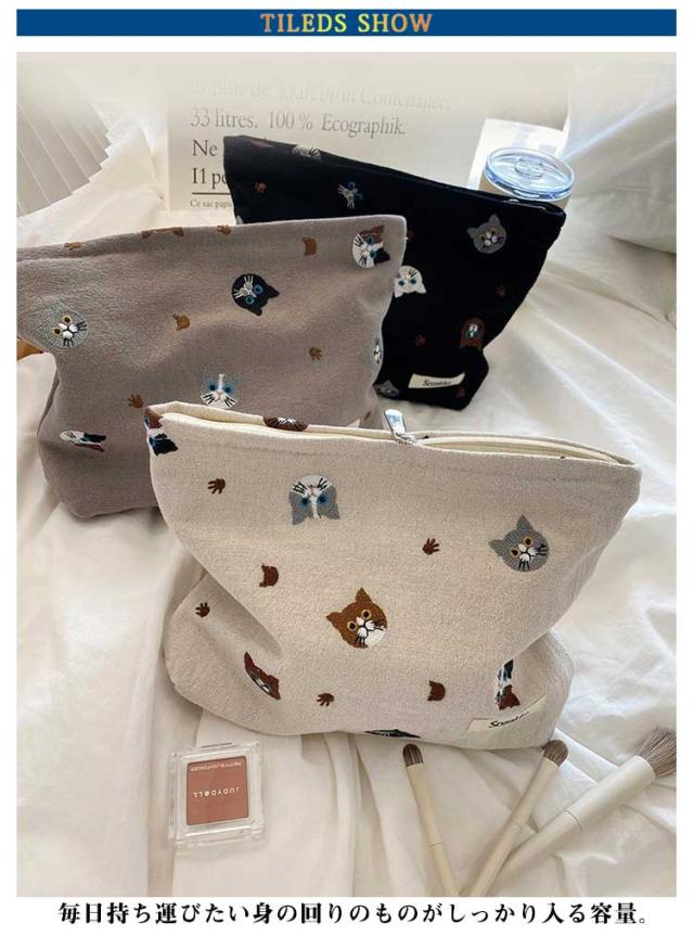 送料無料 ポーチ 猫 小物入れ レディース 可愛い 化粧ポーチ ねこ ネコ 刺繍 通勤 通学 ミニ マルチポーチ おしゃれ 小さい かわいい 布 プレゼント ギフト 猫グッズ キッズ 小物収納 コスメポーチ トラベルポーチ