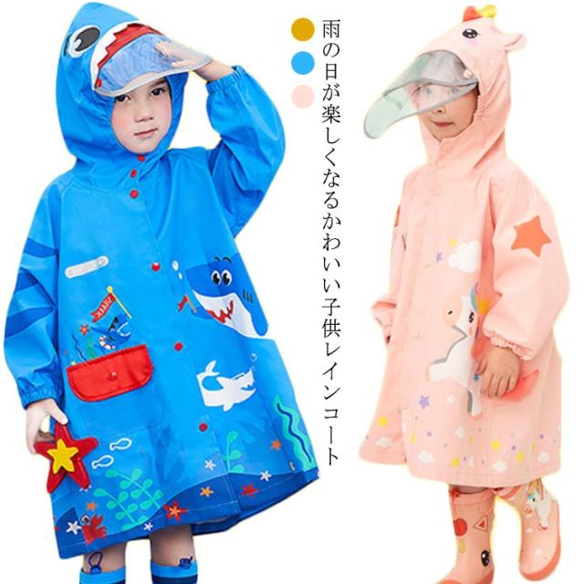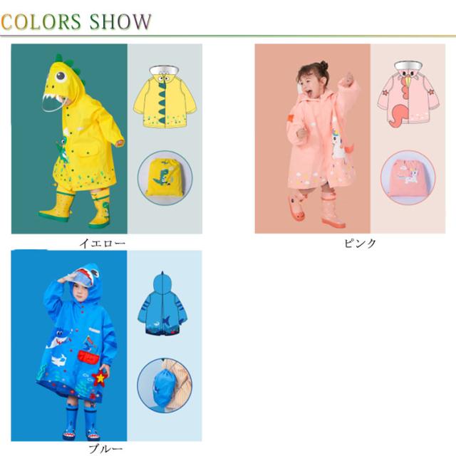 送料無料 レインポンチョ ベビー キッズ 女の子 男の子 リュック対応 レインコート つば付き 恐竜 怪獣 かわいい レインウェア 黄色 ブルー 子供用 雨具 雨合羽 カッパ 軽い 通学 キャンプ 小学生 幼稚園 保育所 低学年 ポーチ付き 防水 ポンチョ レインケープ
