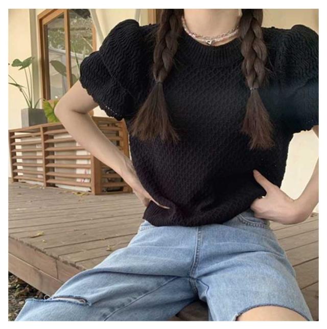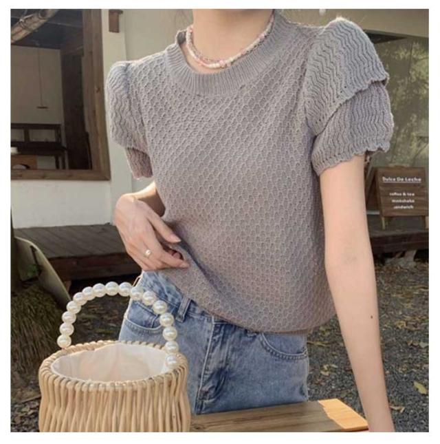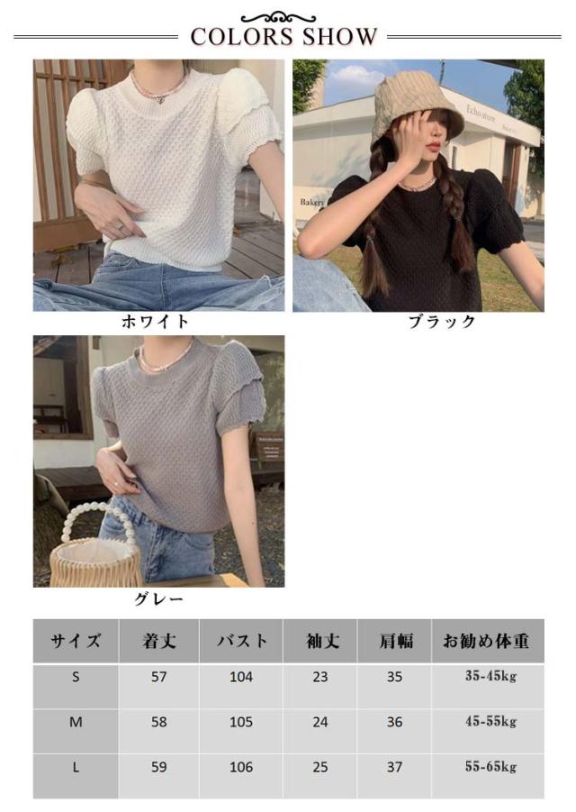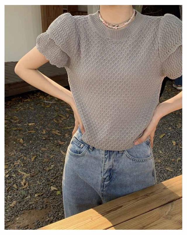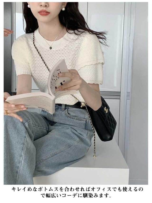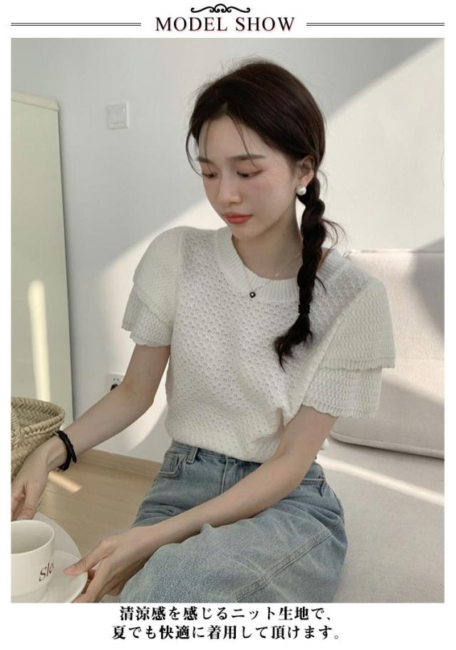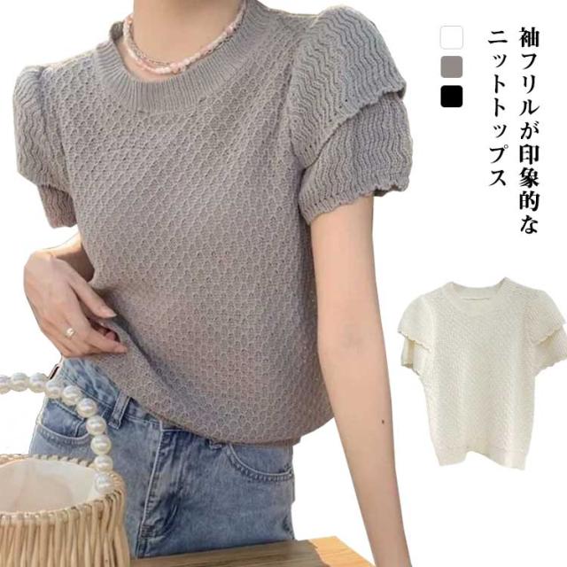 tシャツ カットソー サマーニット レディース 春夏 ニット トップス 半袖 袖フリル クルーネック 夏ニット Tシャツ 夏 サマー ニット 薄手 涼しい シンプル 無地 きれいめ カジュアル OL オフィス 夏 夏服 夏物 送料無料