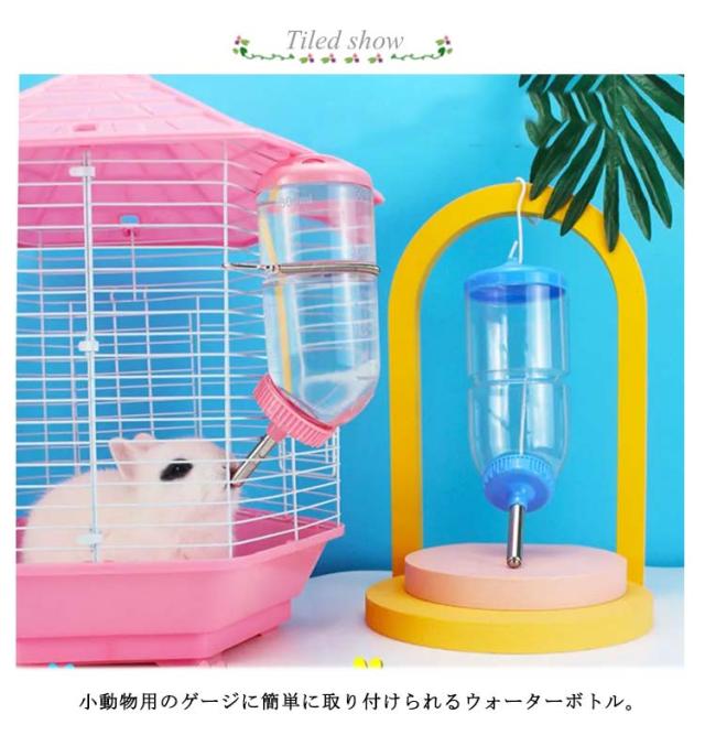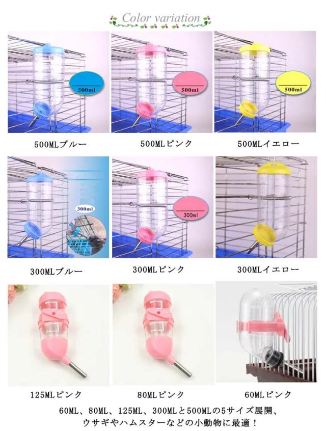 小動物用給水器 ウォーターボトル 給水器 給水ボトル 水飲み 固定 ケージ 吊り下げ 対応 クリア 小動物 ハムスター ウサギ モルモット 60ml 80ml 125ml 300ml 500ml ピンク ブルー イエロー