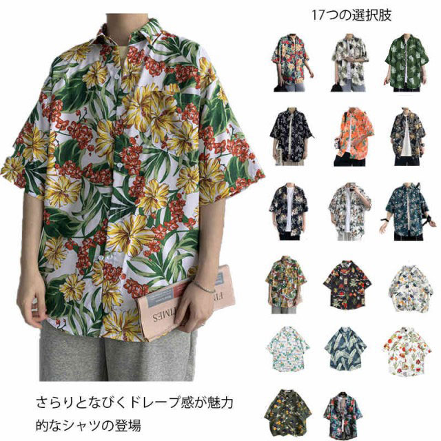 送料無料 アロハシャツ メンズ 半袖シャツ 開襟シャツ 柄シャツ ハワイアン 夏 夏服 オープンカラー サーフ系 無地 リゾート ペア 花柄 シャツ 父の日 プレゼント ギフト カジュアル ヒップホップ ストリート系 韓国 ファッション 春服 春 春夏