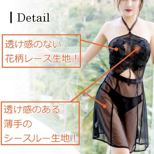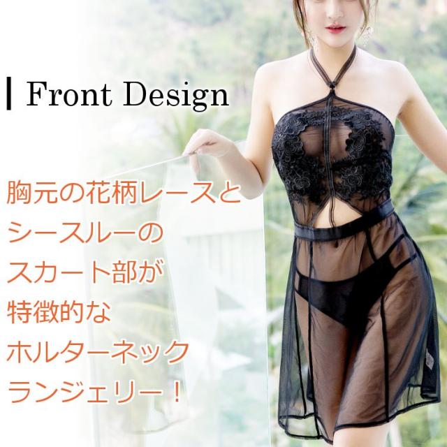 セクシー ランジェリー キャミソール ドレス スリップ 透ける シースルー 下着 かわいい セクシーランジェリー レディース セット ブラック 黒 送料無料 ネコポス便