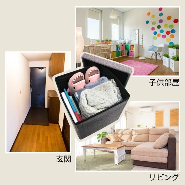 洋服・おもちゃ・本・雑貨など、用途を問わずたっぷり収納でき、リビングや玄関、寝室などさまざまな場所で活躍します。