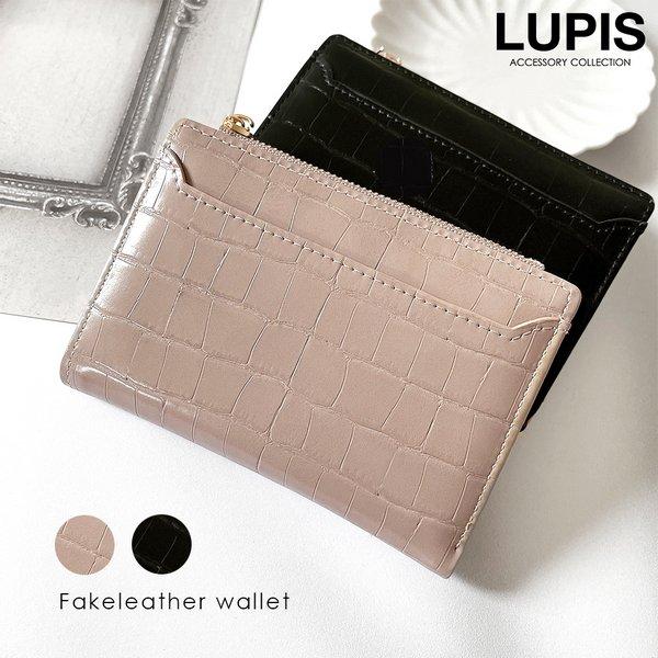 財布 二つ折り財布 ウォレット ミニウォレット 二つ折りウォレット レディース クロコ調 コンパクト 小さめ 収納力抜群 ブラック ベージュ LUPIS ルピス