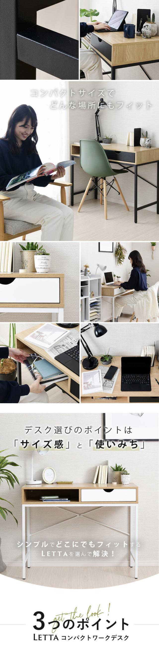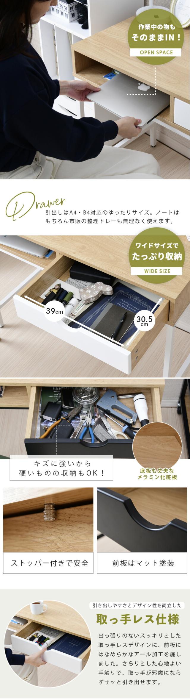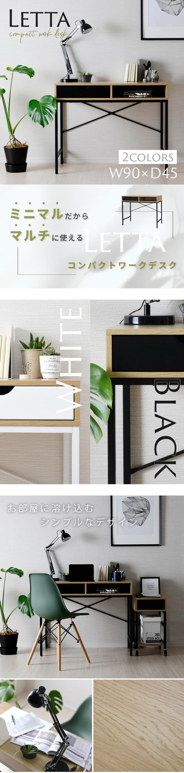moca company レッタ コンパクトデスク 幅90 省スペース リビングデスク シンプル スリム リビング学習デスク 収納付き 引き出し 奥行45 大人 子供 おしゃれ ワークデスク 安い 木製 ワークデスク ミニデスク 小さいデスク 90 90幅 テレワーク