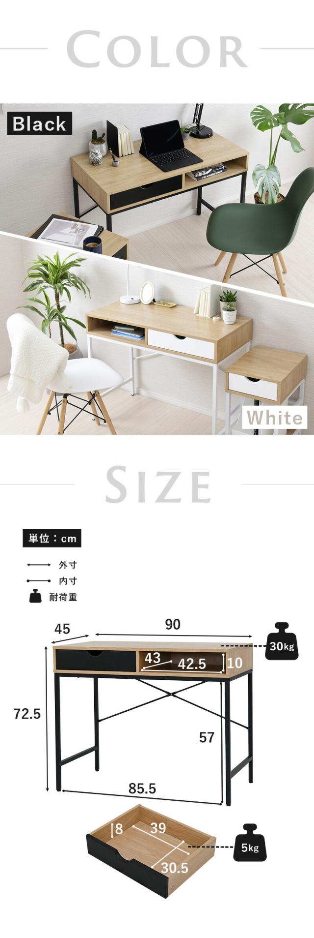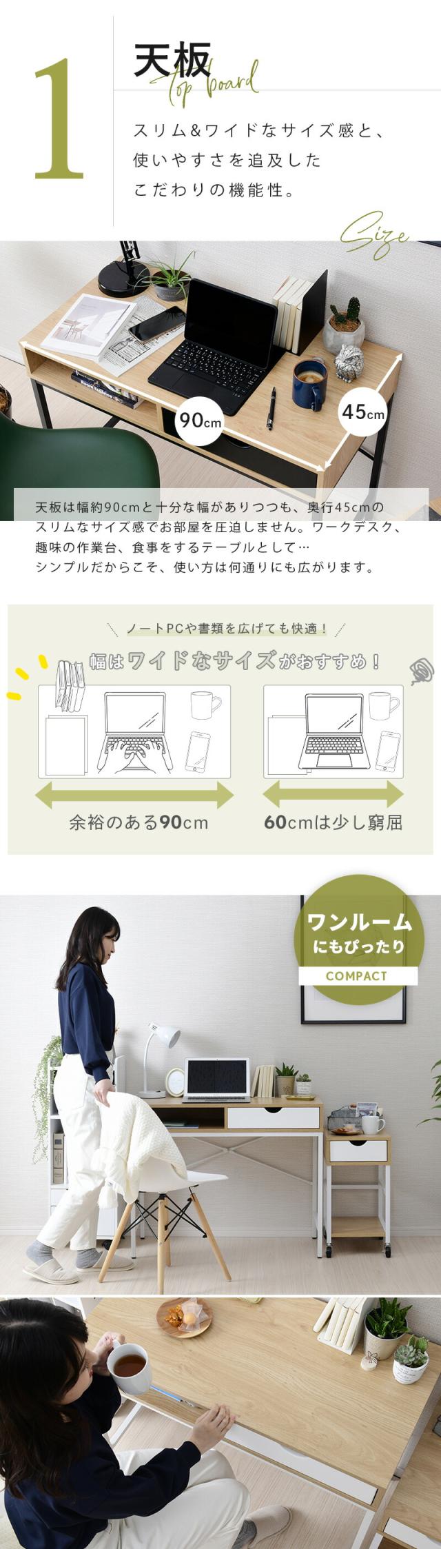 デスク 収納 引き出し パソコンデスク 90cm幅 木製 省スペース PCデスク ワークデスク 引き出し付き 幅90cm コンパクト スリム リビング 書斎デスク 学習机 勉強机 大人 おしゃれ 学習デスク 奥行45 机