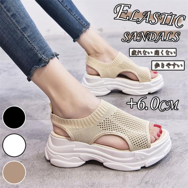 サンダル レディース 歩きやすい 旅行 厚底 ウェッジソール リラックスサンダル 黒 コンフォートサンダル ゴムストラップ サボサンダル