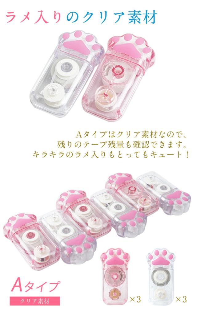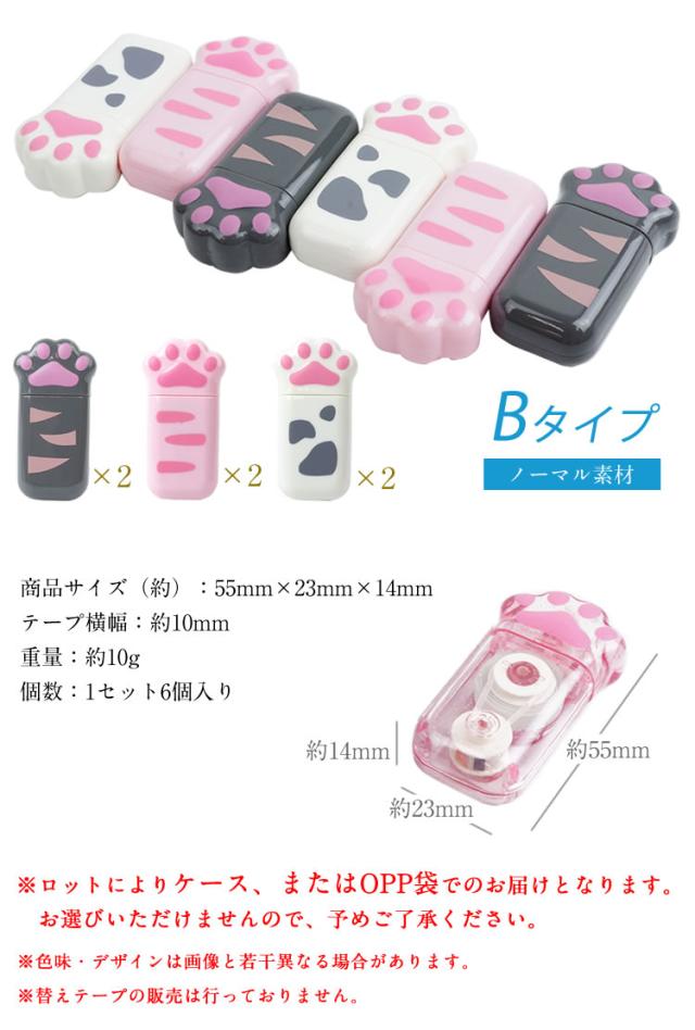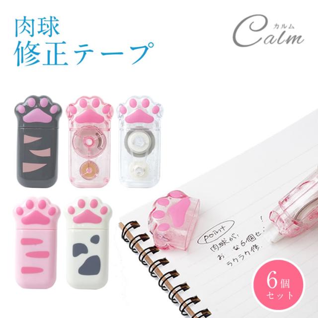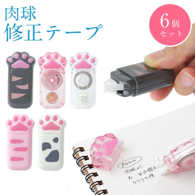 修正テープ 6個セット 肉球 猫 ネコグッズ 文房具 かわいい 文房具 ペン型 スリム 軽量 白猫 黒猫 クリア 透明 ネコ プレゼント ギフト コンパクト