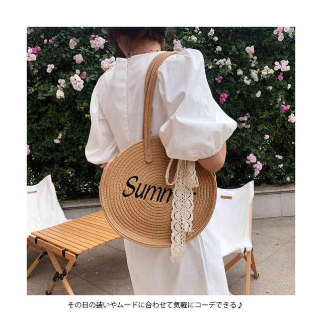 かごバッグ ハンドバッグ 編みバッグ カゴ カゴバッグ ハンドルバッグ トートバッグ サークル型 かごバッグ 春 夏 丸型 サークル型 トートバッグ ペーパーバッグ 軽量 プレゼント ギフト カジュアル サマーバッグ