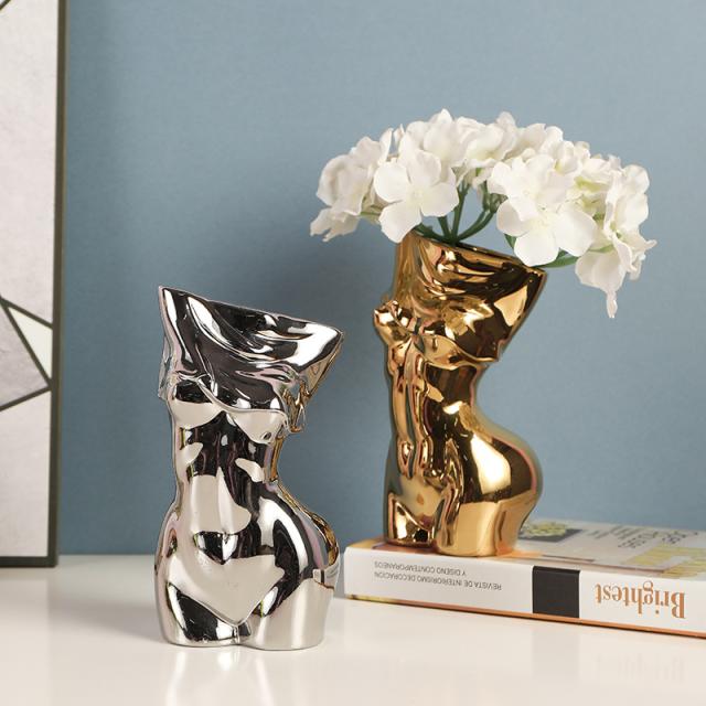 花瓶 人体花瓶 セラミック花瓶 女性の体の彫刻花瓶 プランターポットフラワーアレンジメント ホーム装飾